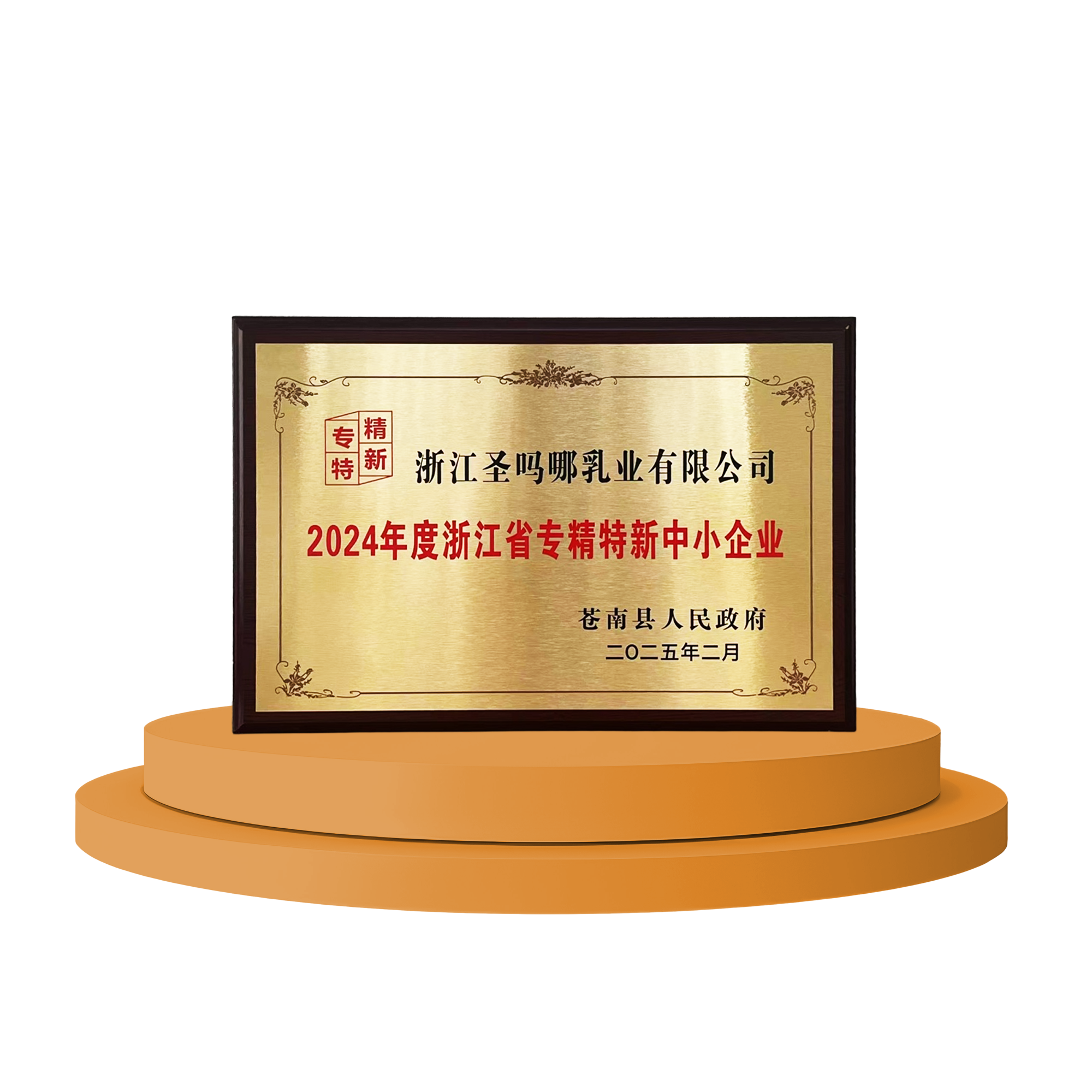 浙江圣吗哪乳业有限公司 颁奖单位:苍南县食品工业行业协会 时间:2024年10月